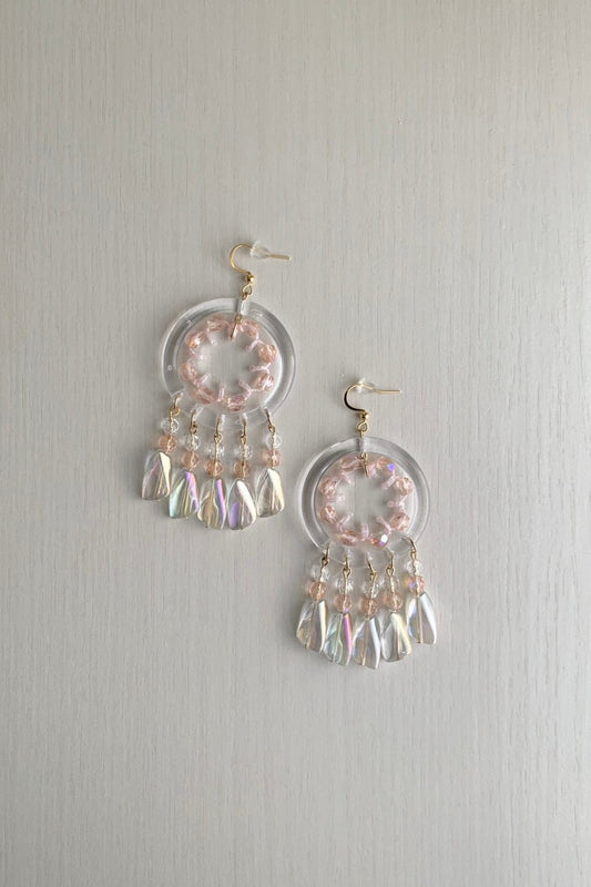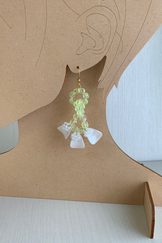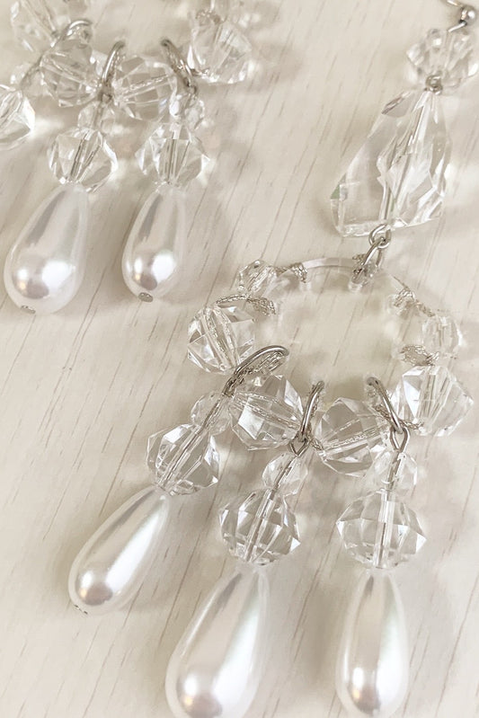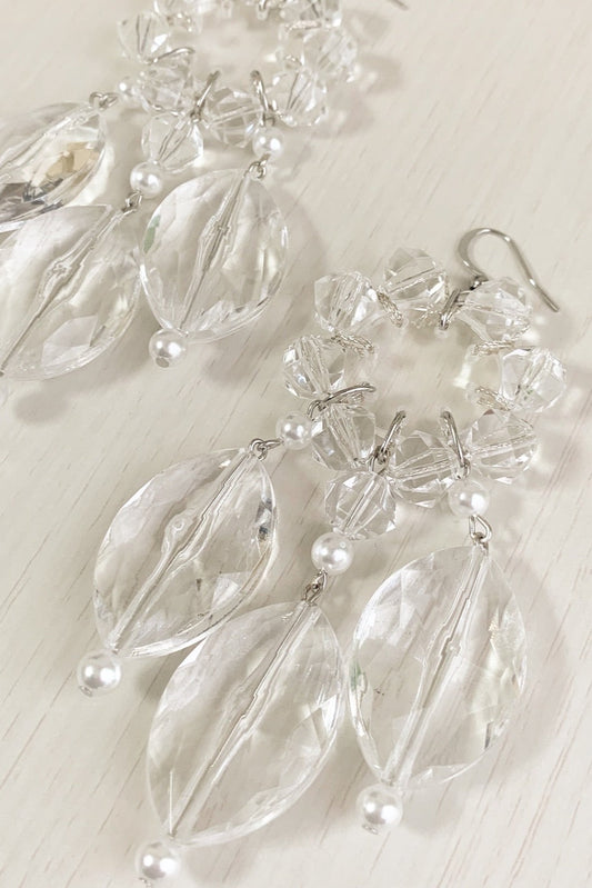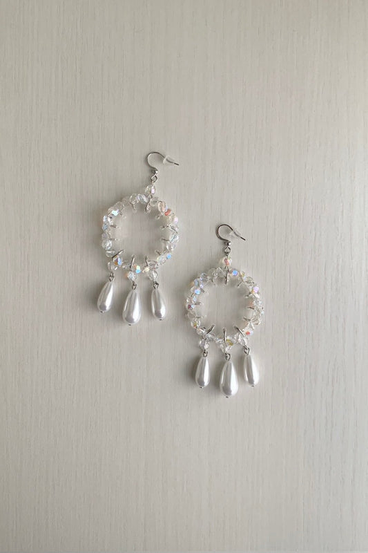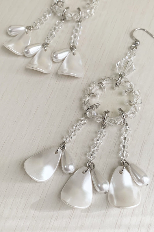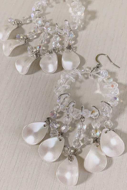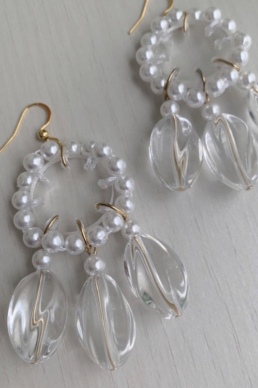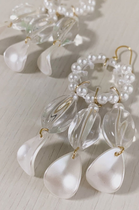 ホワイトステッチクリアパールペタルピアス・イヤリング