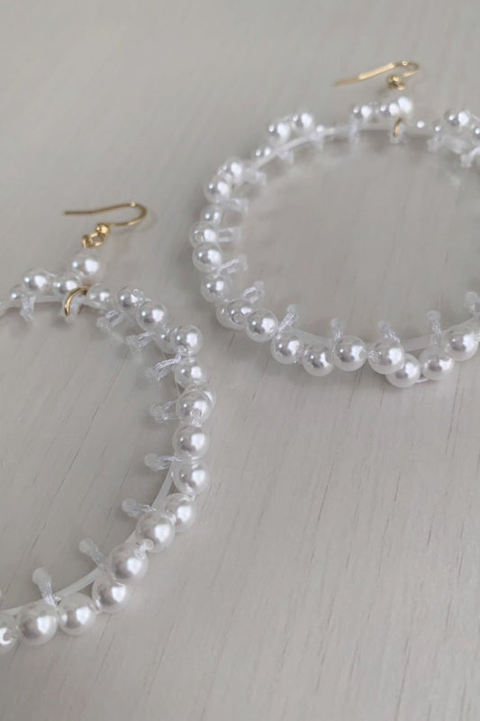 ホワイトステッチパールビーズドロップピアス・イヤリング