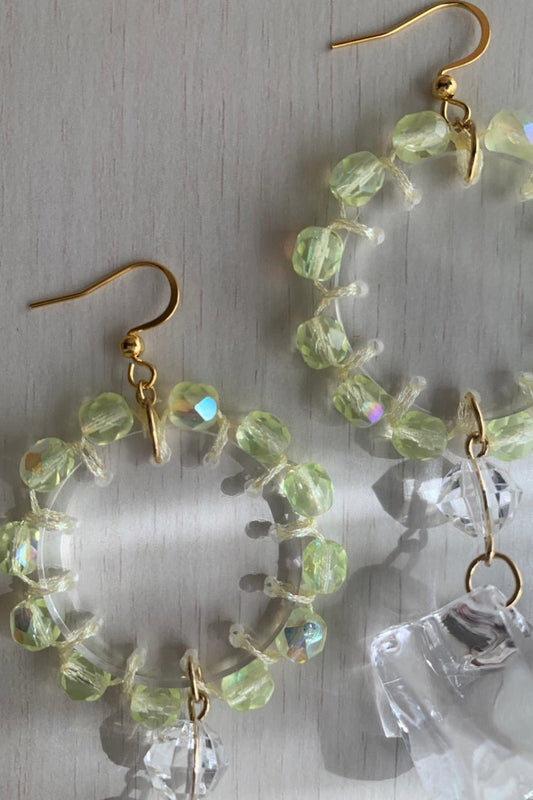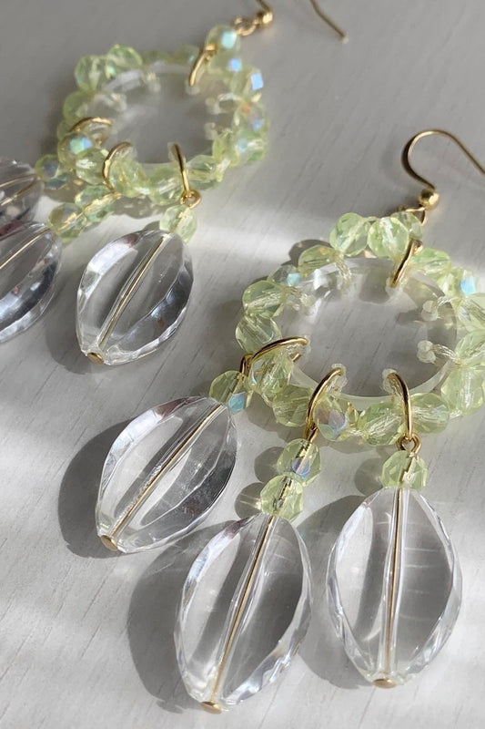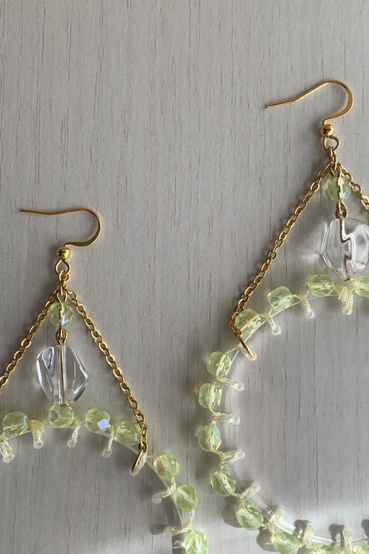 イエローステッチカッティングビーズドロップピアス・イヤリング