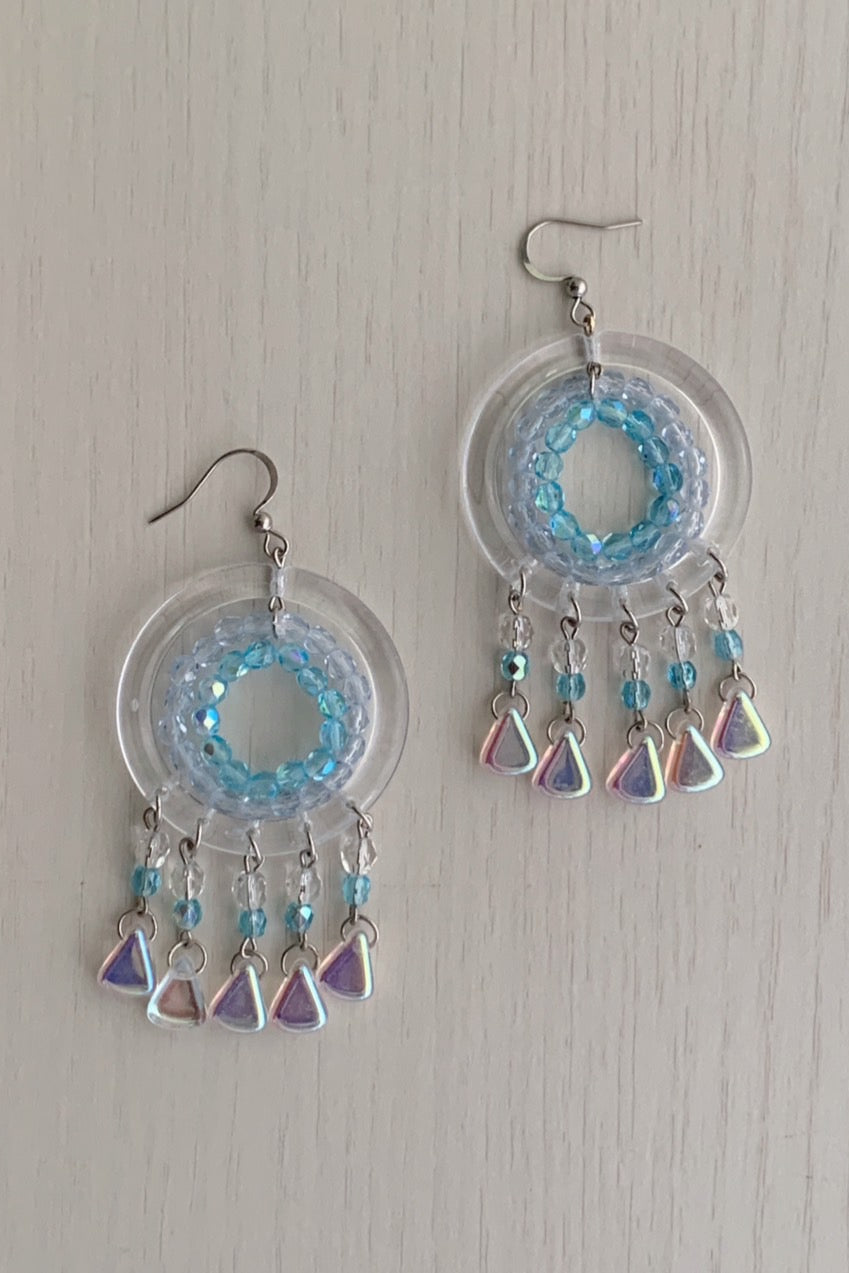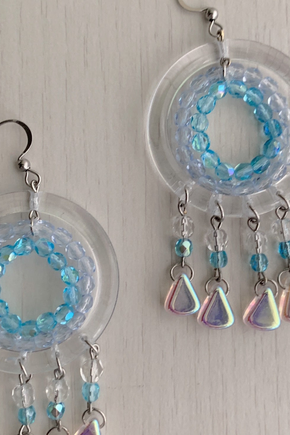 涼しげなカラーリングでグラデーションになる様にカッティングビーズを組み合わせたアイテム。
