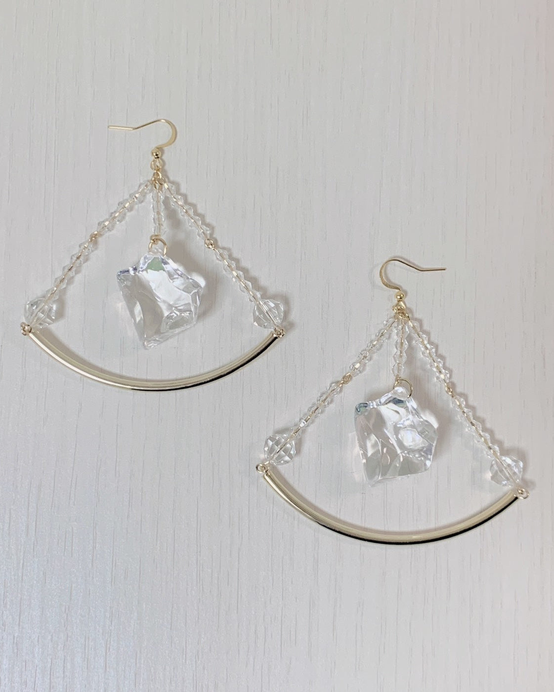 透明のカッティングビーズと、コロっとしたフォルムが可愛いストーン型のパーツを組み合わせたアイテム。