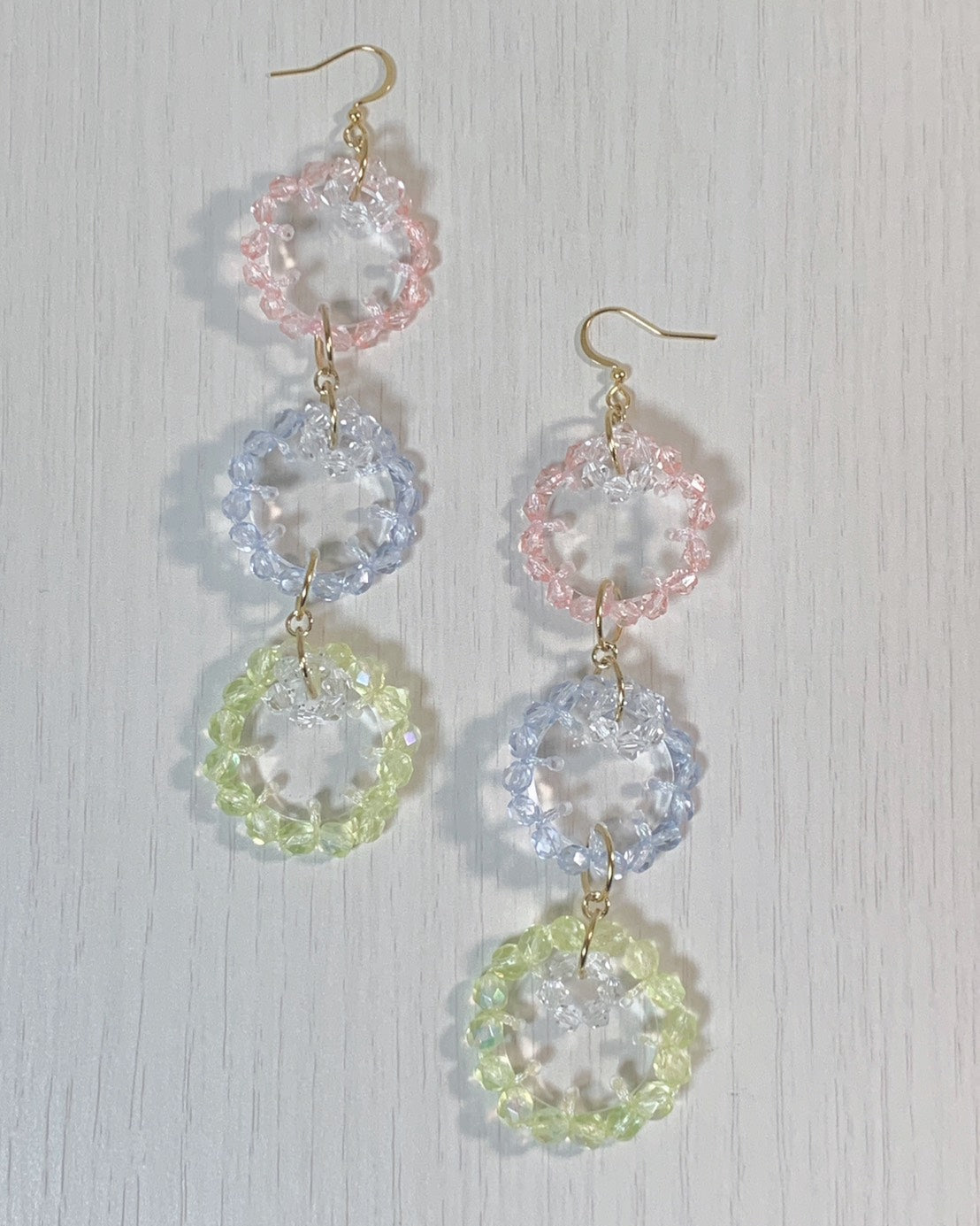 軽やかなパステルカラーのカッティングビーズを3色組み合わせたアイテム。